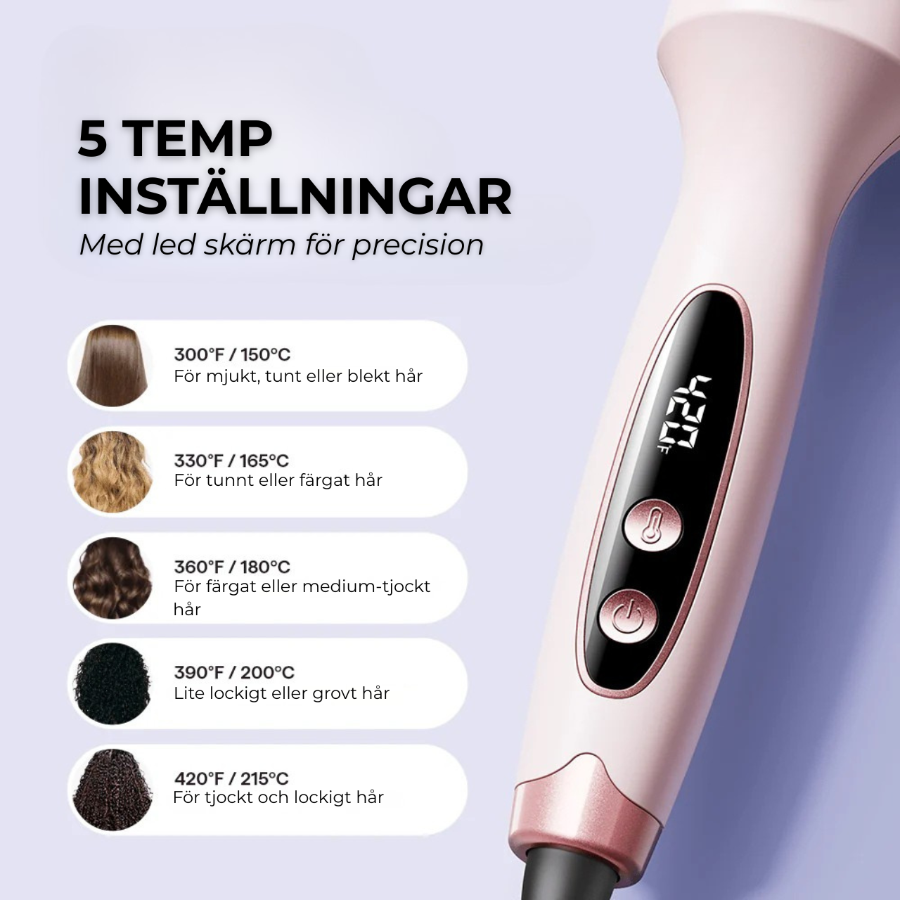 För bästa och mest skonsamma resultat rekommenderar vi 30 grader.